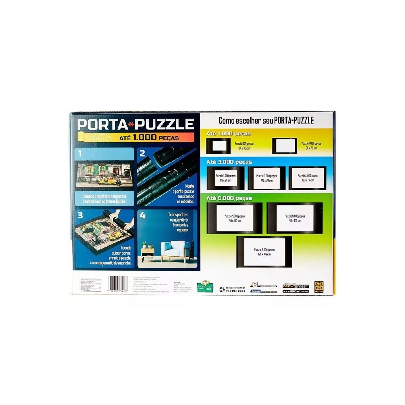 Descrição: Um sistema prático e ideal para guardar seu puzzle com segurança durante a montagem até terminá-lo. Com Porta-Puzzle você pode continuar montando seu puzzle mesmo durante as suas viagens. Basta enrolar e carregar, sem risco de desmontar ou perder peças.