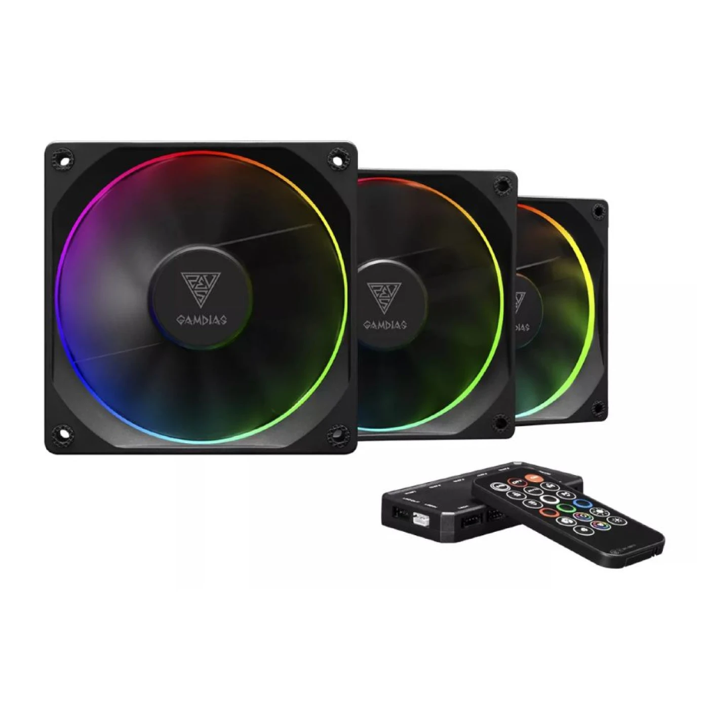 KIT FAN COM 3 UNIDADES GAMDIAS AEOLUS M3 1203R, ARGB, PRETO, 120MM, COM CONTROLADOR, AEOLUS M3-1203R