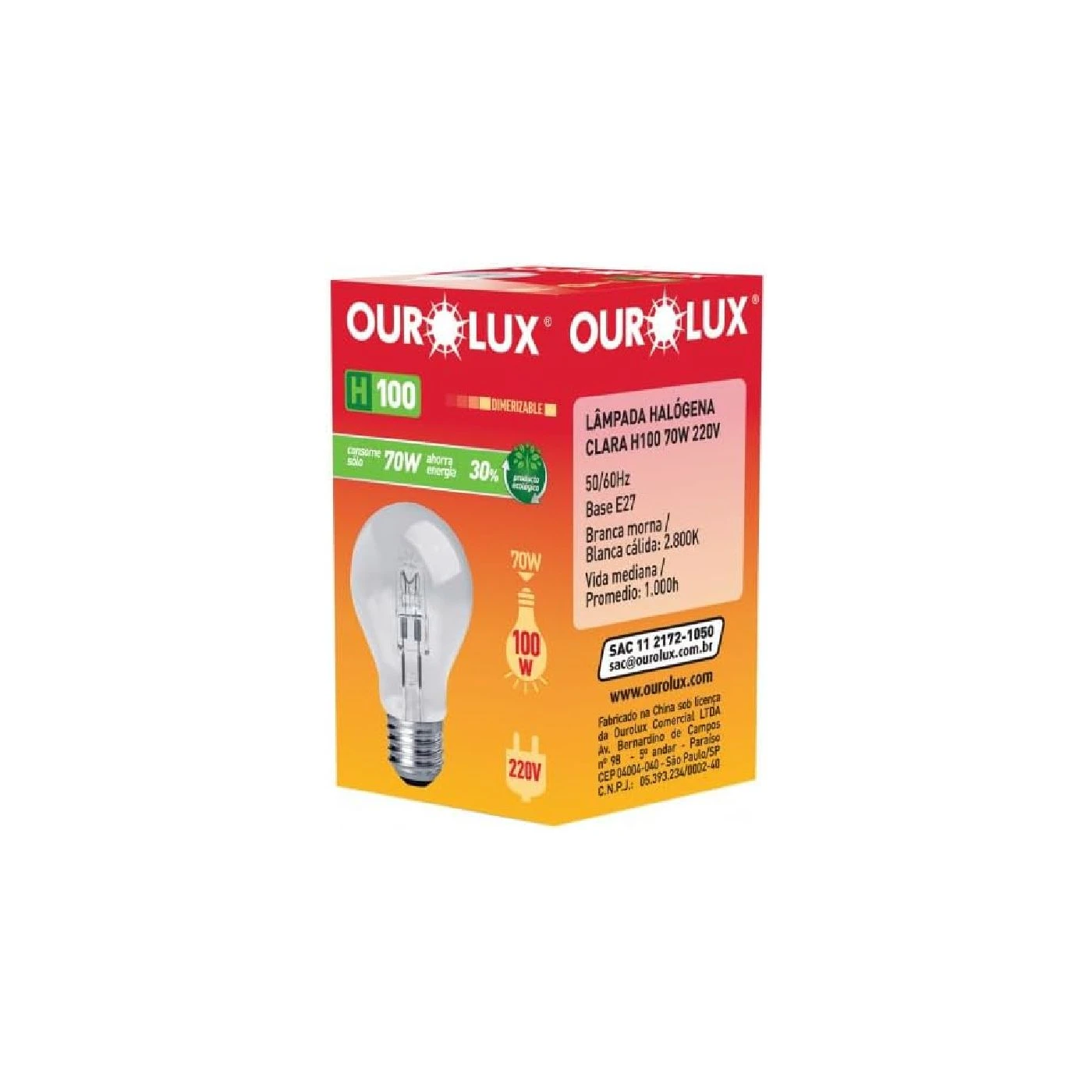 Temperatura de cor: 2700K (Branco quente)