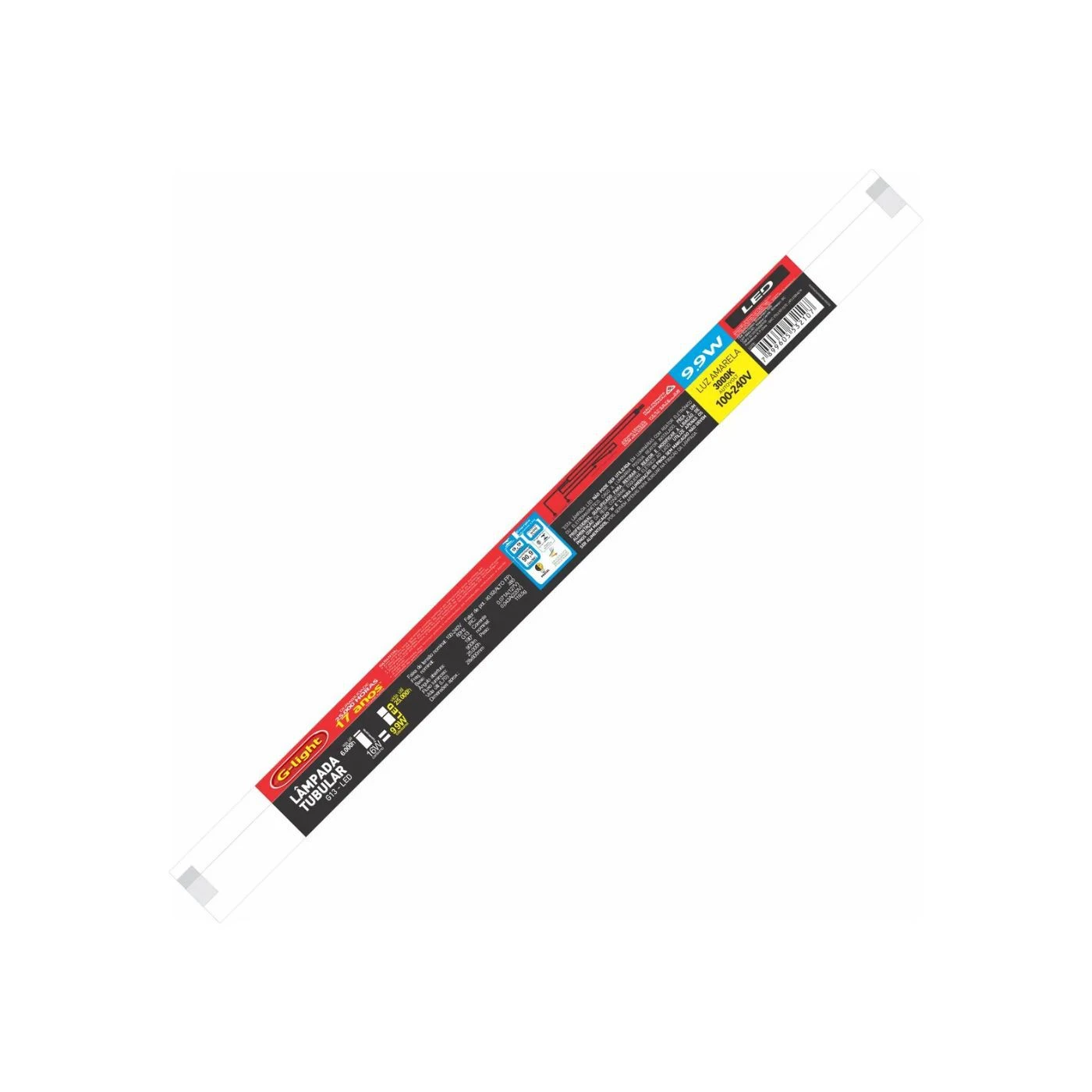 Lâmpada LED tubular modelo T8-G13-9,9-30-3C, 9,9W e 3000K, oferecendo iluminação eficiente, econômica e durável. Ideal para uso residencial e comercial.
