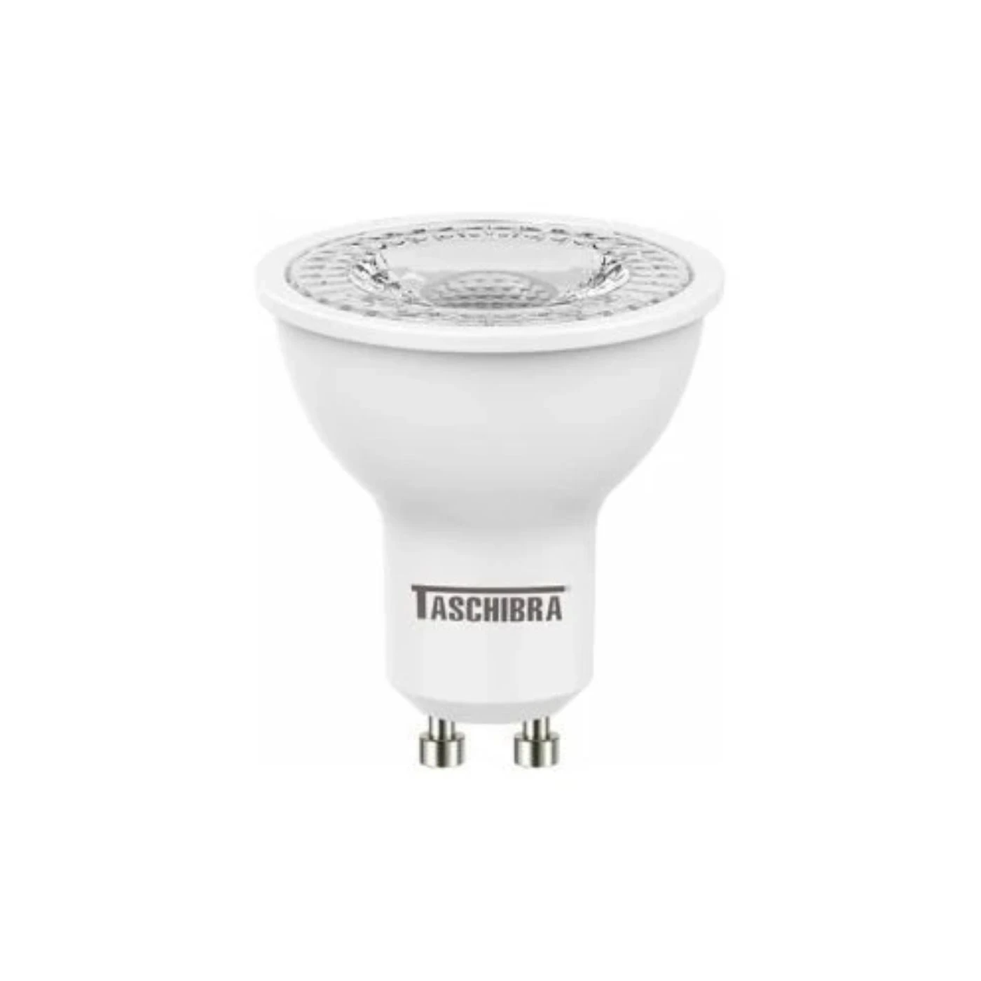 Lâmpada LED MR16 da Taschibra, 4W, com luz branco quente 2700K, ideal para iluminação decorativa, spots e ambientes residenciais ou comerciais. Alta eficiência energética e longa durabilidade, substituindo lâmpadas halógenas de menor vida útil.