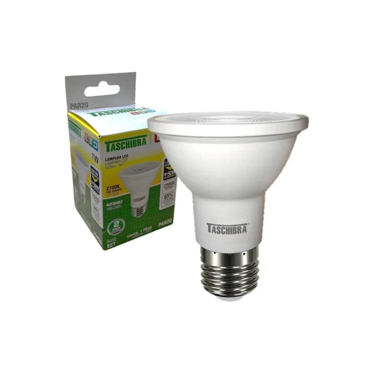 Lâmpada Led Par20 E27 7w 2700k Luz Quente Taschibra