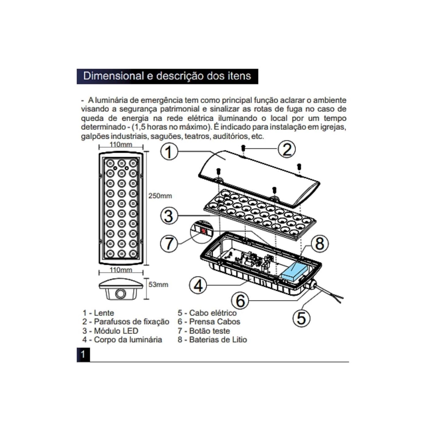 Modelo: Luminária Emergência 30 LEDs 10W 6500K IP43