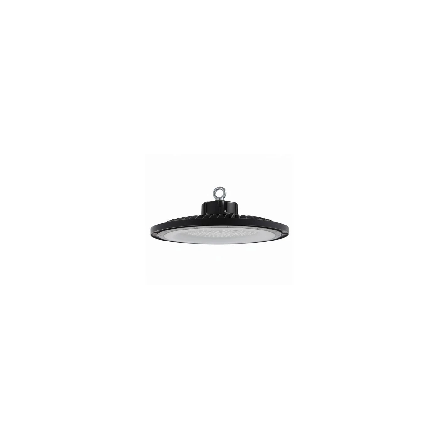 Luminária LED High Bay UFO de 100W com luz branca fria 6500K, projetada para ambientes industriais e comerciais. Possui alta eficiência energética, corpo resistente com proteção IP65, longa vida útil e excelente desempenho luminotécnico. Marca: G-Light. Modelo: GLH 01/25.