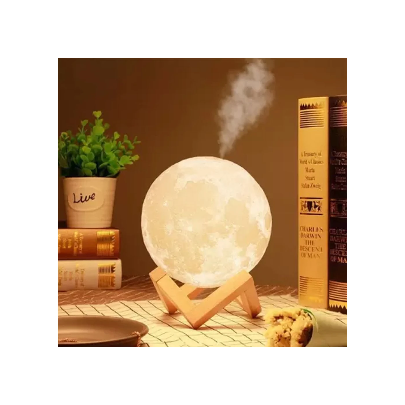 Além de suas capacidades de umidificação, a luminária Lua 3D também oferece opções de iluminação LED, permitindo que você ajuste a atmosfera de acordo com sua preferência e humor. As diferentes cores e intensidades de luz podem criar uma atmosfera relaxante para ajudá-lo a descontrair após um longo dia ou fornecer um brilho suave para acompanhar uma noite tranquila.