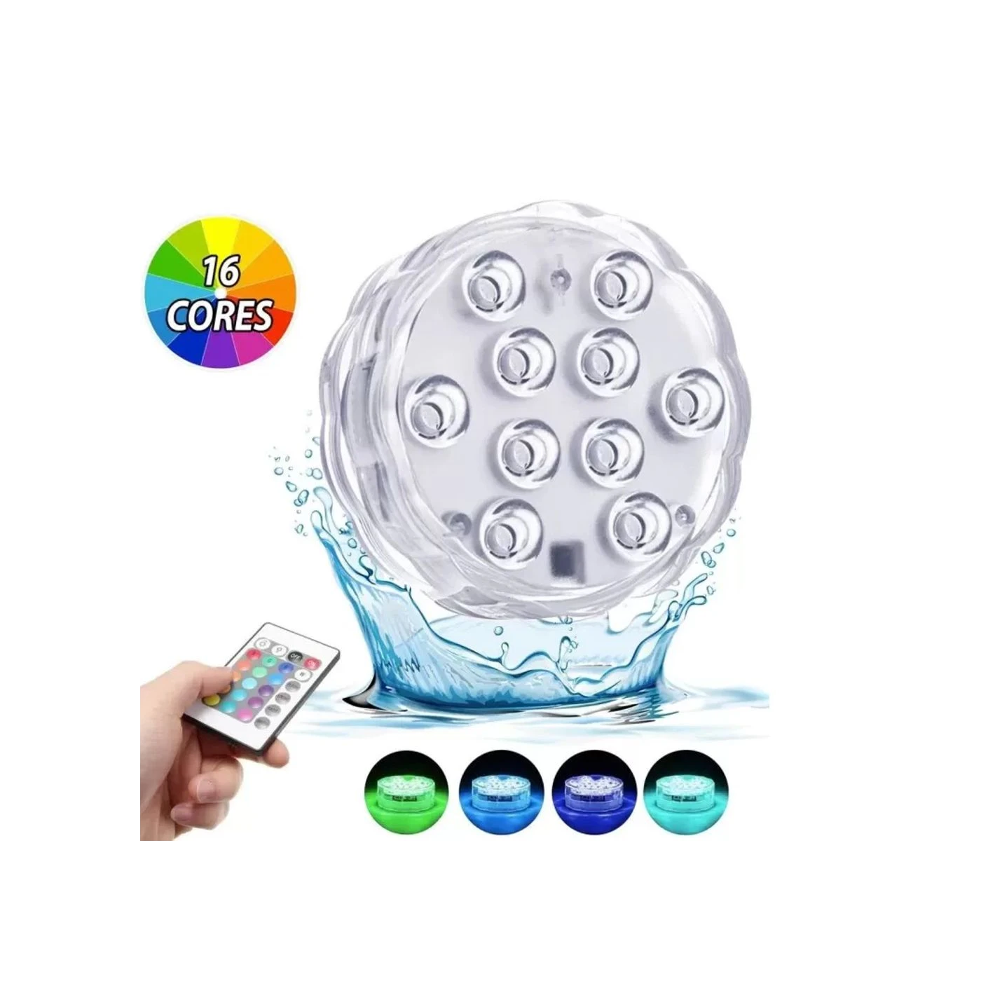 Luminária De Piscina 10 Leds RGB Prova d'agua + Controle 4.5V