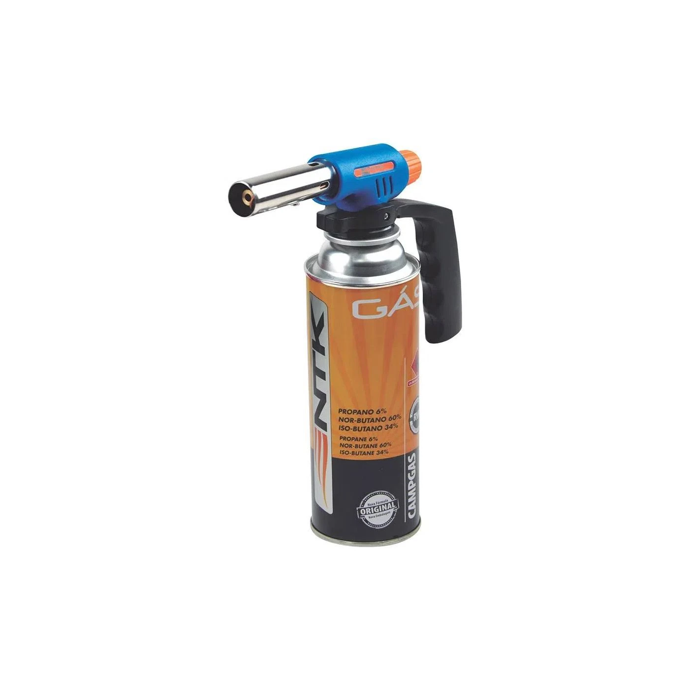 Pesa 200 g, tem medidas: 4 cm (A) x 14 cm (L) x 2 cm (P), está disponível na cor azul e necessita cartucho de gás Campgás (não incluso).