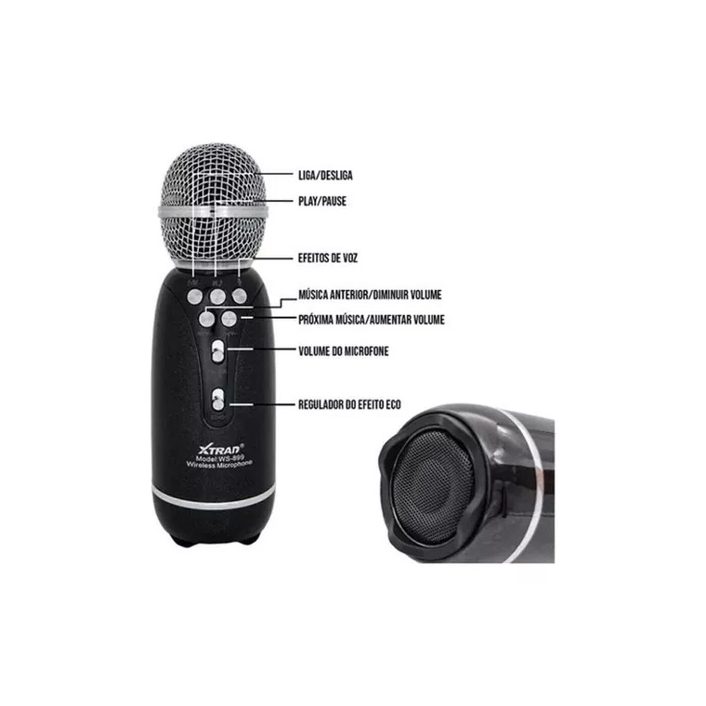 - Microfone Karaokê com conexão Bluetooth.