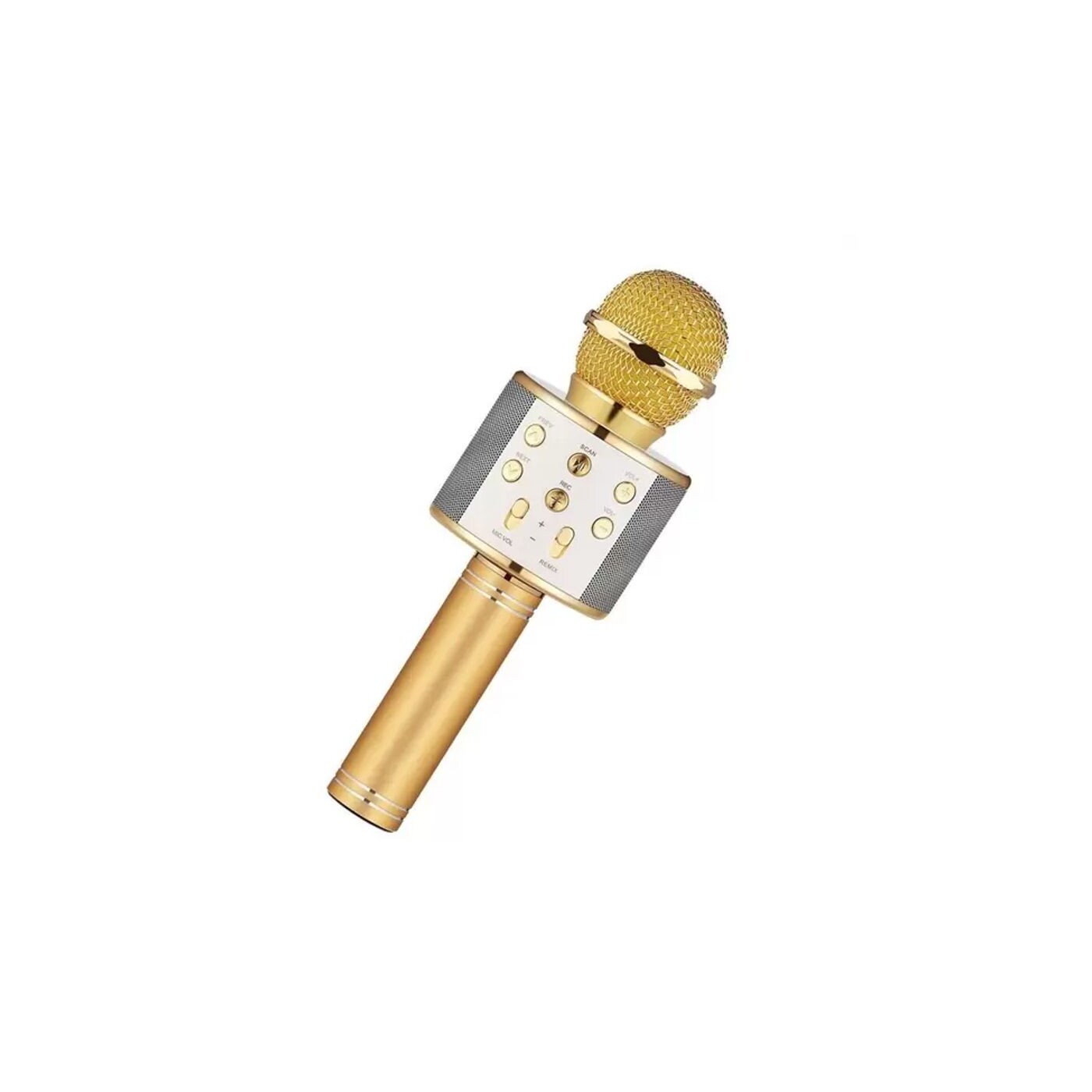 MICROFONE BLUETOOTH SEM FIO KARAOKE FM SD TF USB GRAVADOR EFEITO DE VOZ WS-858 ROSE Muito Divertido Varias Opções de Voz, Pode ser Conectado no Aparelho de Som. Microfone bluetooth de alta sensibilidade que vai transformar suas brincadeiras entre amigos mais divertidas. Construído em dois alto-falantes, você pode ouvir e cantar a qualquer hora e em qualquer lugar. Usando o Bluetooth do telefone móvel, para sincronizar com suas música prediletas. Função de cancelamento de ruído microfone capacitivo sem fio, você pode desfrutar e cantar suas músicas com praticidade pelo próprio microfone.