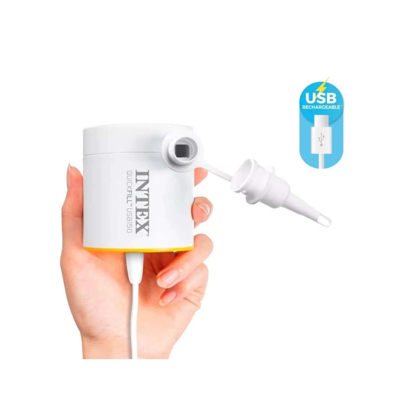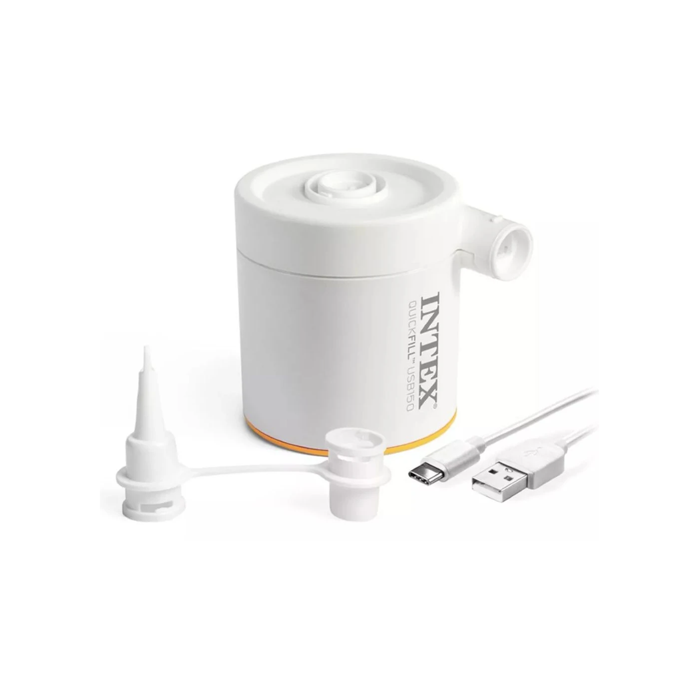 A Bomba de Ar Elétrica Quick Fill USB da Intex é potente e econômica, com ela você conseguirá encher botes e diversos tipos de infláveis em questão de minutos. Ela possui bicos adaptáveis para o tipo ideal de inflável e a função reversa para desinflar os objetos.