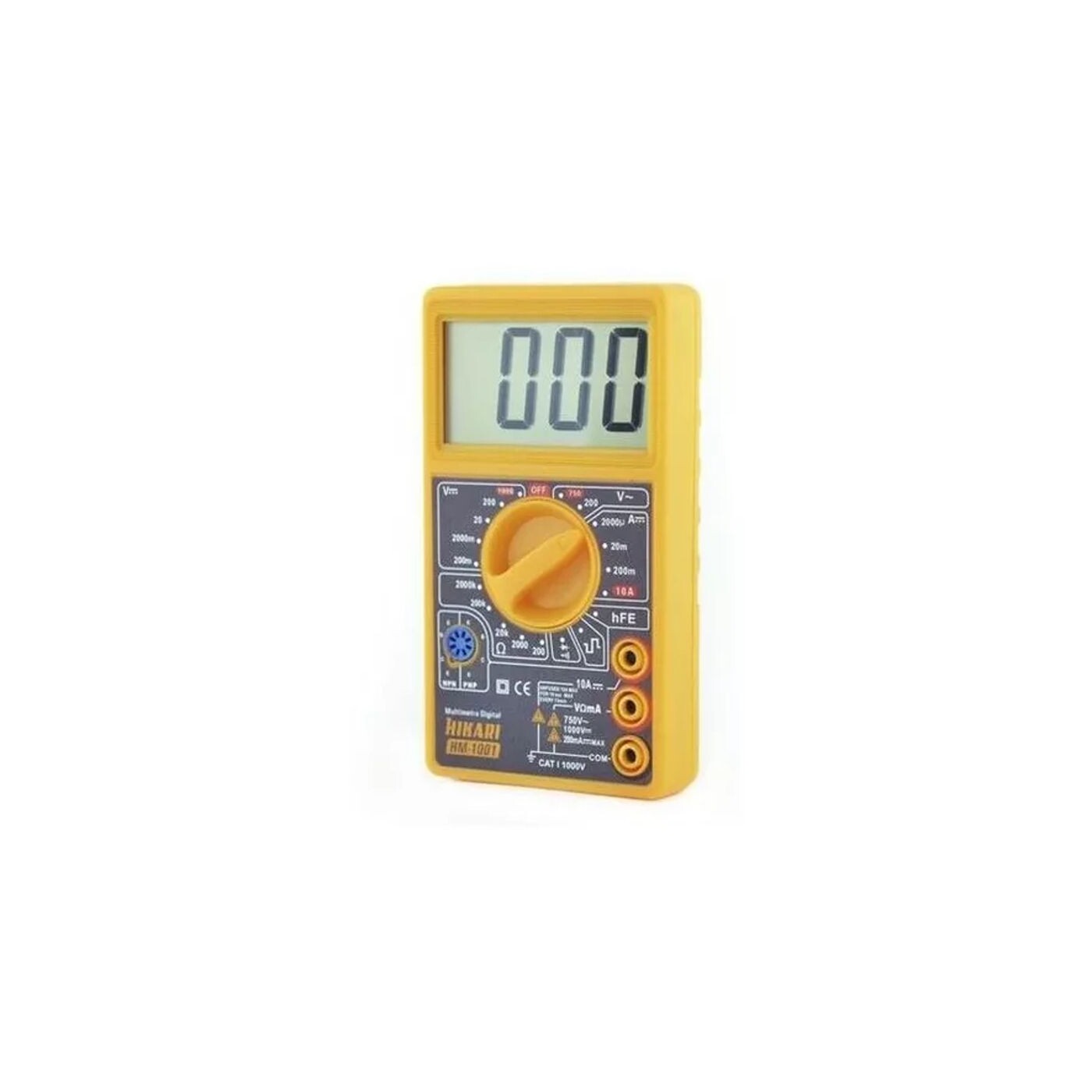 O aparelho Multímetro Digital Modelo HM-1001 se destaca pelas medidas de Tensão DC/AC, Corrente DC, Resistência e pelos testes de Diodo e Continuidade. Como característica adicional apresenta as funções: Gerador de Onda Quadrada, Teste de hFE e Indicador de Bateria Fraca