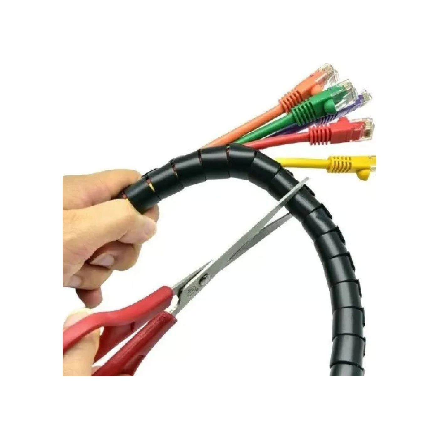 Este produto é feito em formato espiral, o que facilita a inserção e remoção dos cabos. Além disso, seu design preto discreto se integra perfeitamente a qualquer decoração, mantendo a estética do seu espaço enquanto organiza e protege seus cabos.