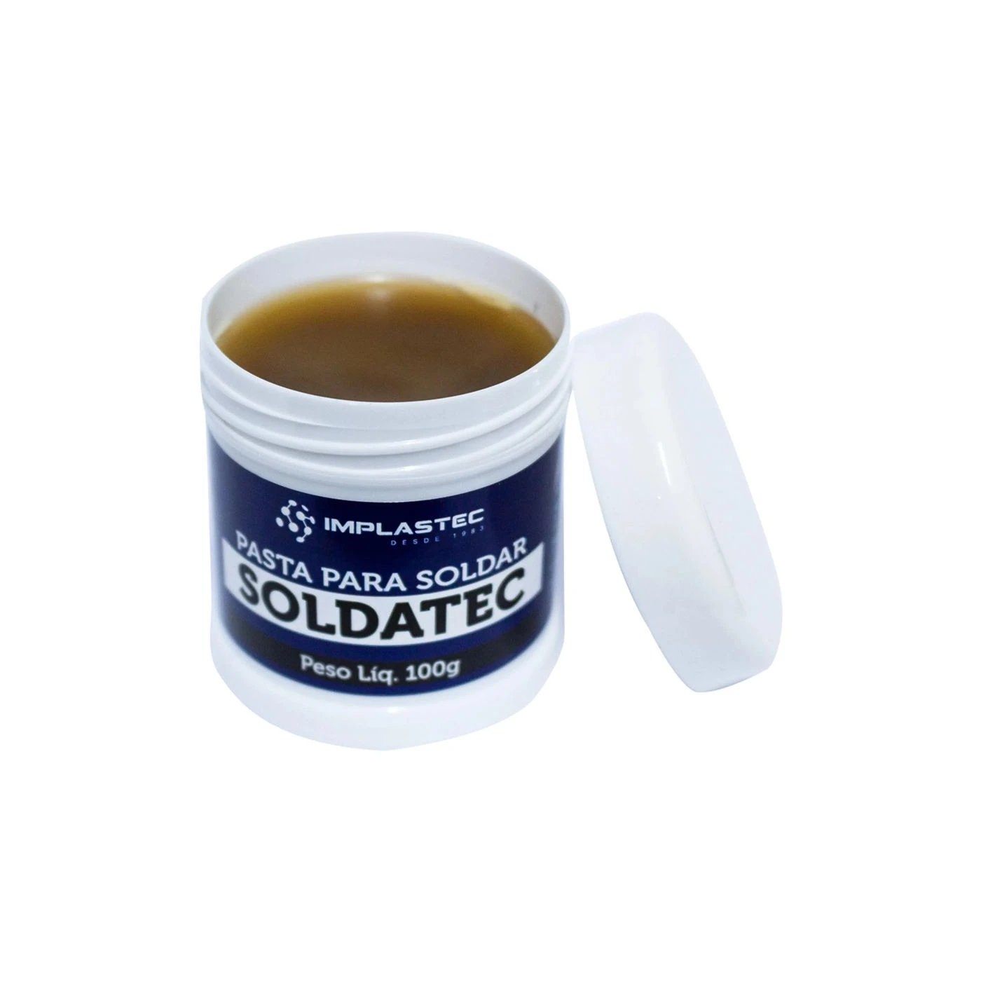 A Pasta de Solda Soldatec é formulada a base de colofônia (breu) e hidrocarbonetos, usada profissionalmente há um longo tempo para trabalhos de soldagem metálica, com soldas a base de misturas eutéticas de estanho. A Soldatec age como fluxo de solda, ativando a ligação metal-metal pela desoxidação das partes a serem unidas. Os resíduos desse processo de desoxidação e solda são totalmente solúveis em álcool etílico ou isopropílico, sendo este último o mais utilizado no segmento eletro-eletrônico.