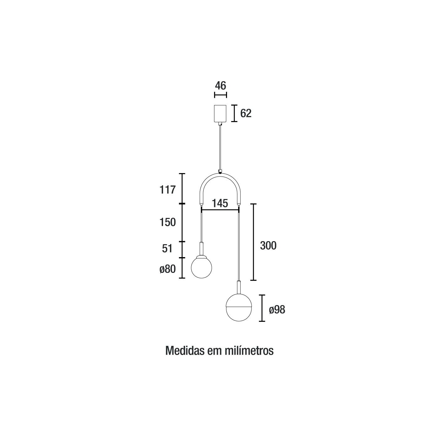 O pendente Macadâmia duplo é indicado também para banheiros laterais e sobre mesas e cabeceiras.