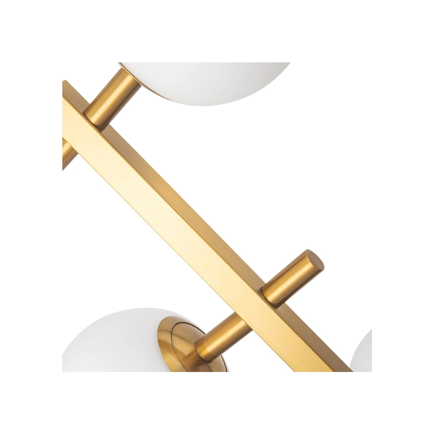 A cor dourada do lustre adiciona um toque de glamour ao ambiente, combinando perfeitamente com diversos estilos de decoração. Além disso, o material de metal e vidro utilizado na fabricação deste produto garante a sua durabilidade e resistência.