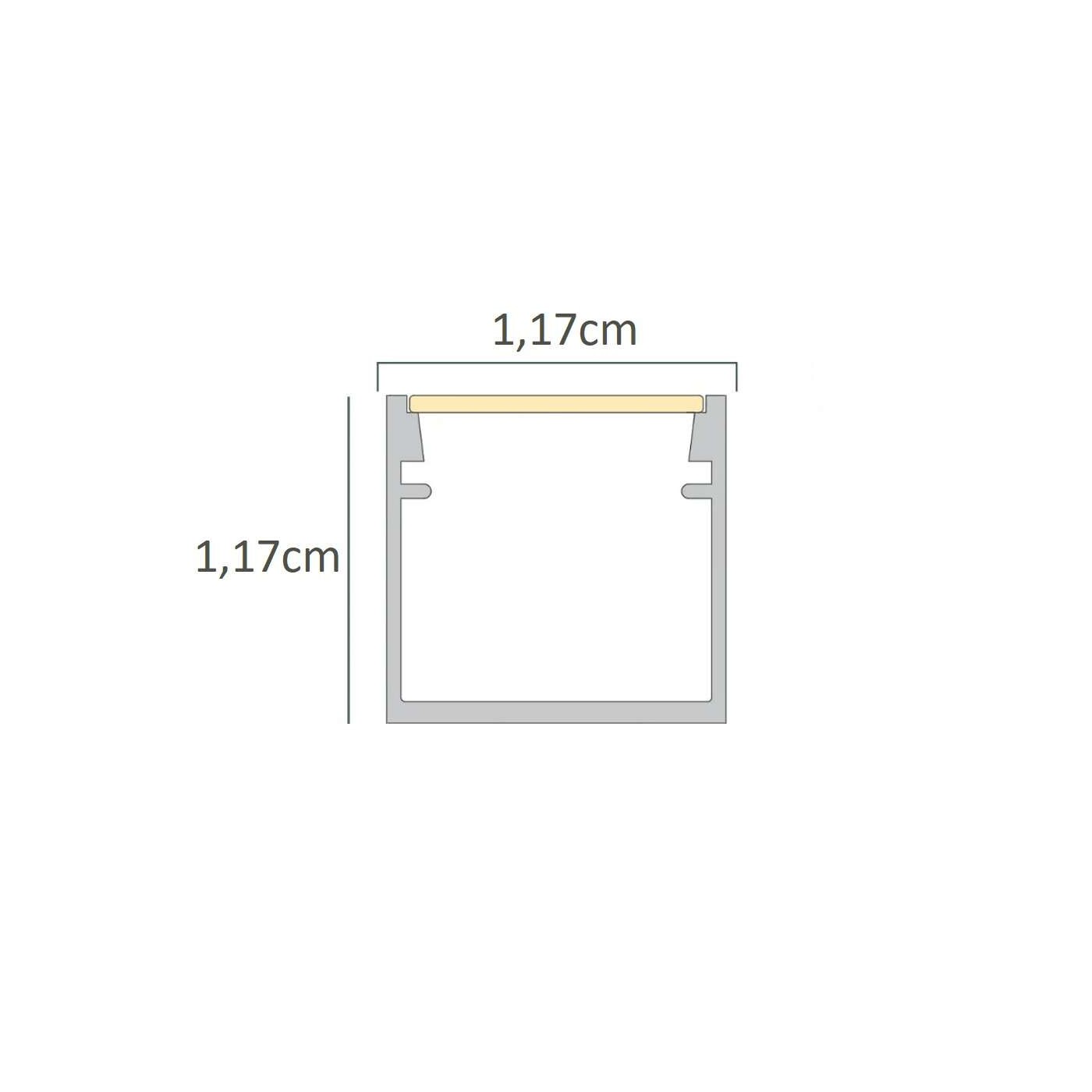 Perfil de alumínio, difusor em PMMA, para sobreposição em alvenaria, mobiliário ou para embutir. Possibilita corte, indicado para colocar fita 12V. Basta colocar as tampas para fechar as extremidades (tampas inclusas). Possibilidades de circuito para qualquer fita led de 12V. Tampas de fechamento em acrílico para uma melhor fixação. Acrílico transmite até 60% da luz da fita.