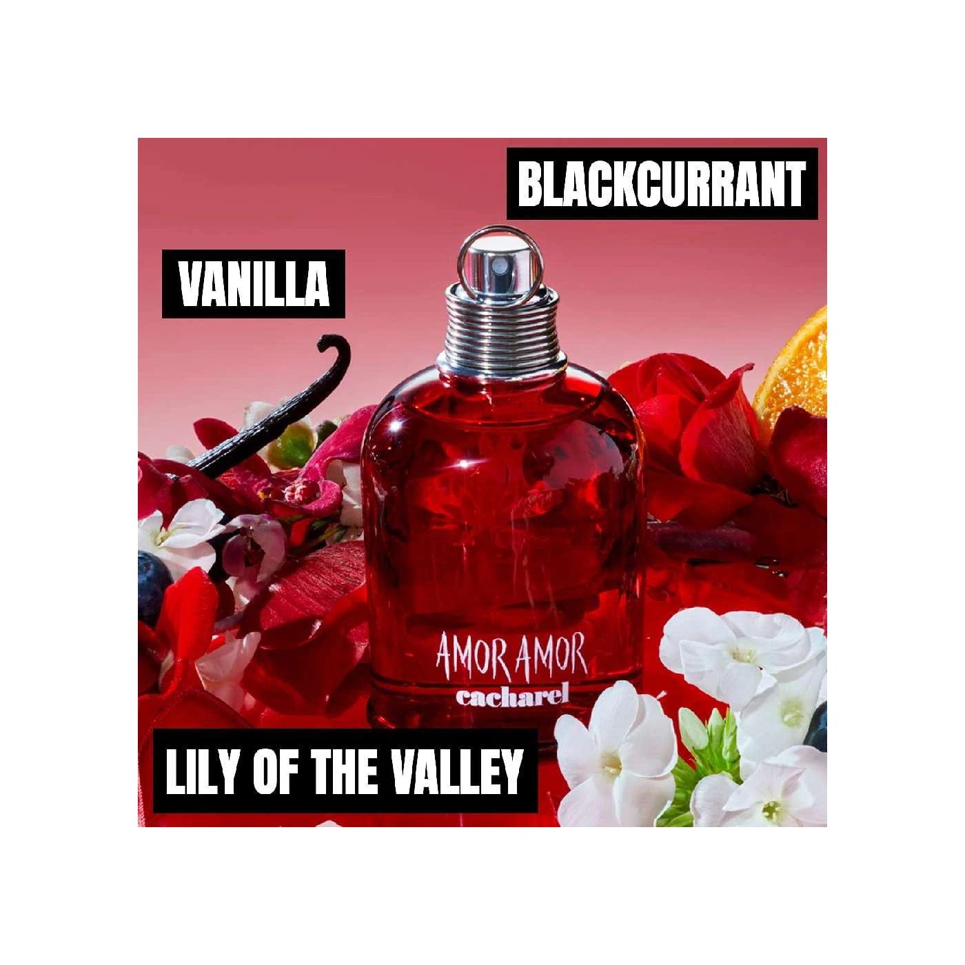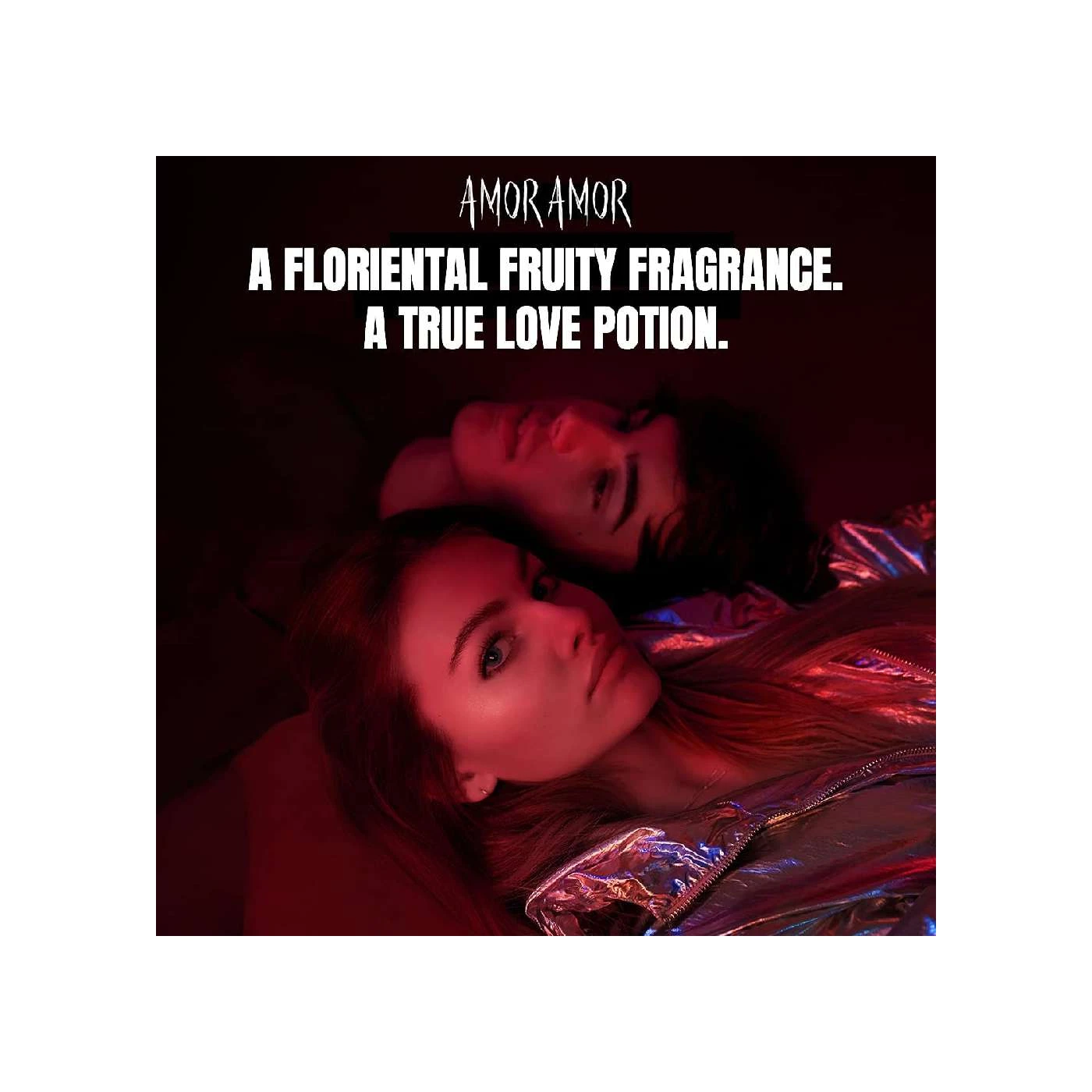 » Um grupo de amigos caminha por uma floresta. Desbravando o local, encontram uma cachoeira. Descalços, a água fresca toca seus pés. O casal se olha, suas mãos se tocam e o inesperado acontece. Impulsionados pela emoção e a adrenalina da paixão, eles correm em direção à cascata. Jovens, destemidos, encantados e com um frio incontrolável na barriga, eles se beijam sob a queda d’água. Amor Amor é o perfume da paixão e do amor à primeira vista. Intenso, imediato, vivo, eletrizante, saboroso e marcante, Amor Amor nos lembra que o olfato é o sentido mais essencial da sensualidade. O vermelho vibrante do frasco reúne notas mágicas de tangerina, cereja preta, jasmim de quatro pétalas da Indonésia, lírio-do-vale, almíscar branco e âmbar cinza.