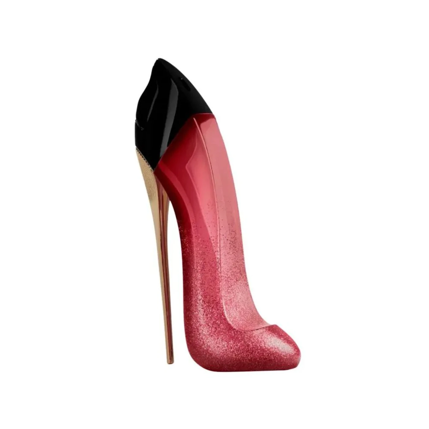 O Very Good Girl Glam Parfum eleva o icônico frasco Good Girl com seu salto-agulha vermelho-cereja brilhante com uma cascata de glitter deslumbrante, uma expressão espetacular de feminilidade.