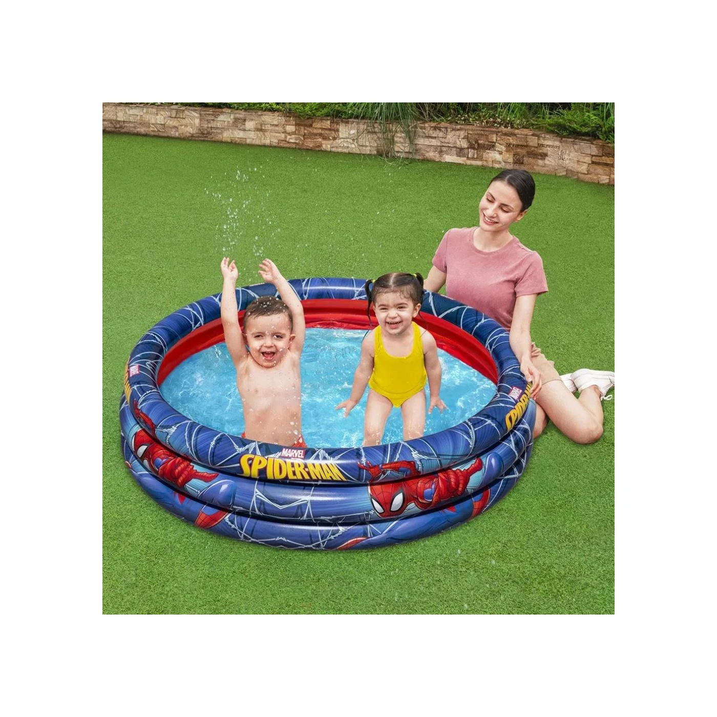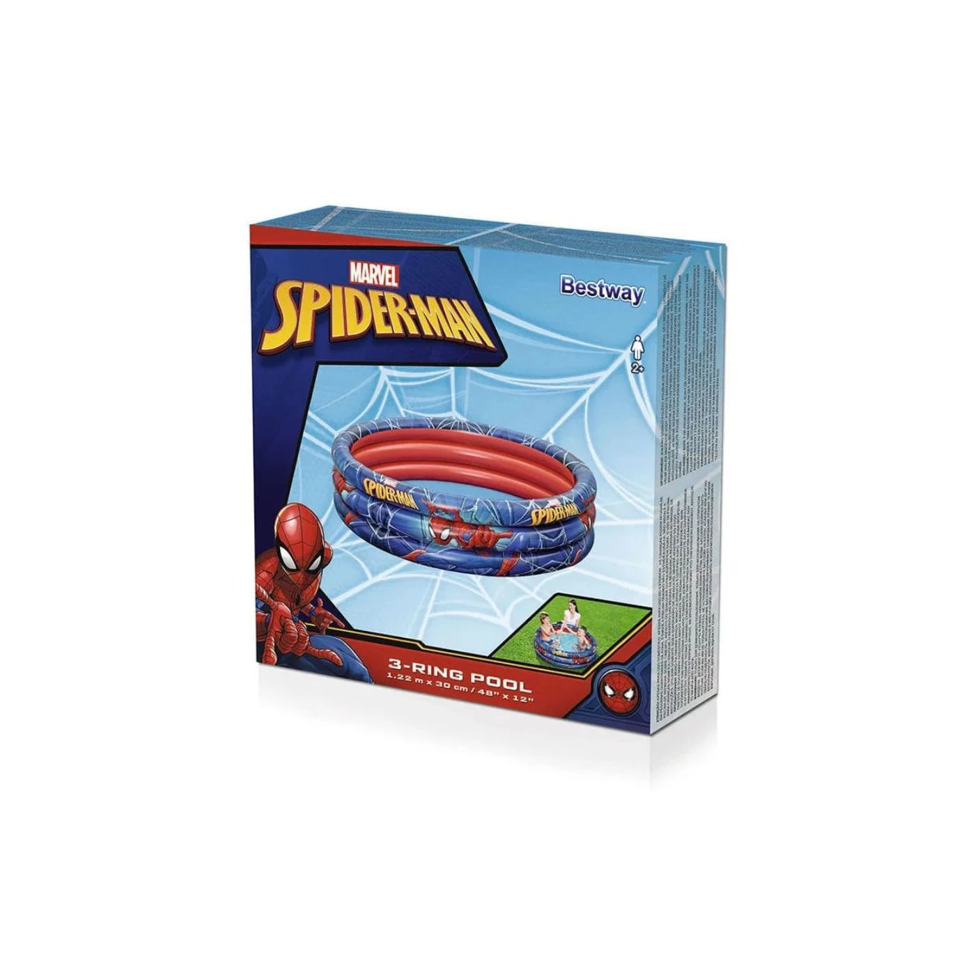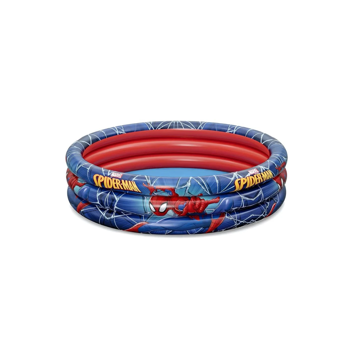 Piscina inflável temática do Homem-Aranha, ideal para diversão infantil em quintais ou áreas externas. Fabricada pela Bestway, modelo 120060, com capacidade para 200 litros, resistente e segura para crianças. Fácil de montar, leve e prática para guardar após o uso.