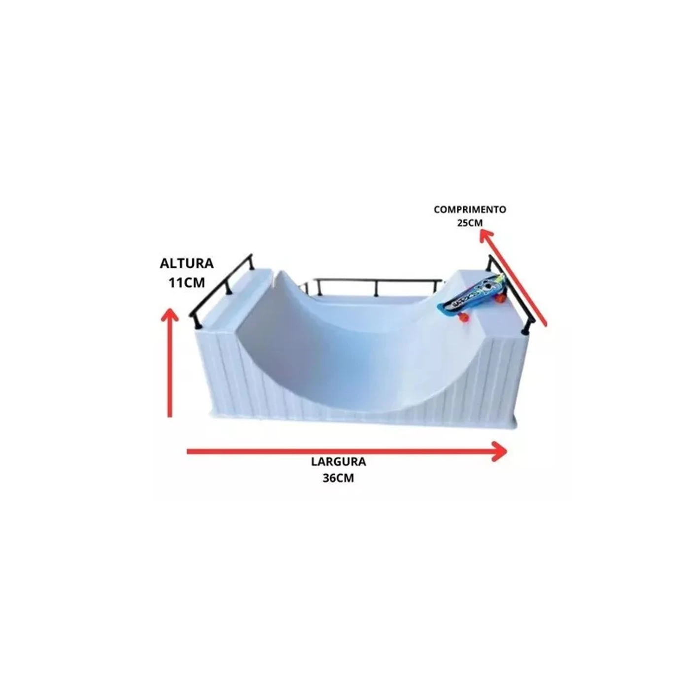 A Pista Skate De Dedo Half Rampa Corrimão + 1 Finger Board é um brinquedo que proporciona horas de diversão e criatividade para crianças a partir de 3 anos. Com 25 cm de comprimento, este kit é composto por uma pista de skate em miniatura e um finger board, ambos feitos de polipropileno e poliestireno, materiais conhecidos pela sua resistência e durabilidade.