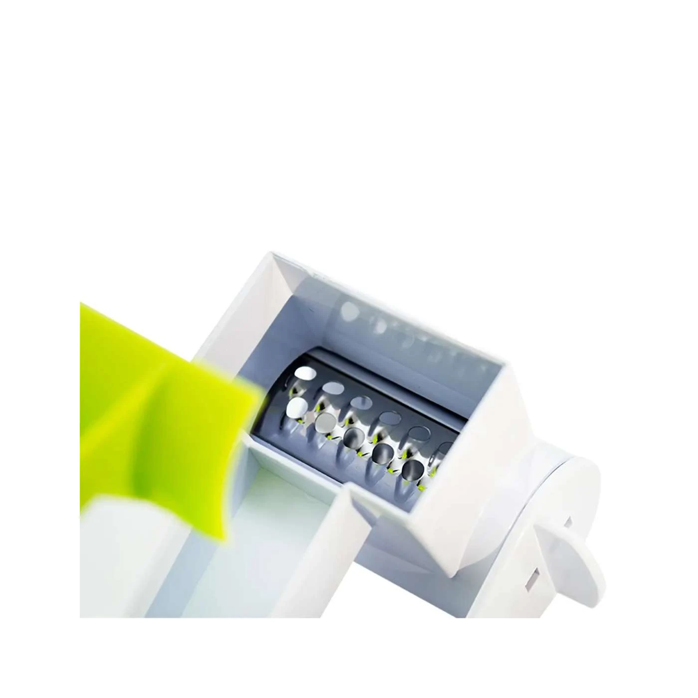 » Fácil de usar: Basta colocar um pedaço fino de queijo no compartimento, pressionar para baixo o cabo ergonômico e girar a manivela no sentido horário.