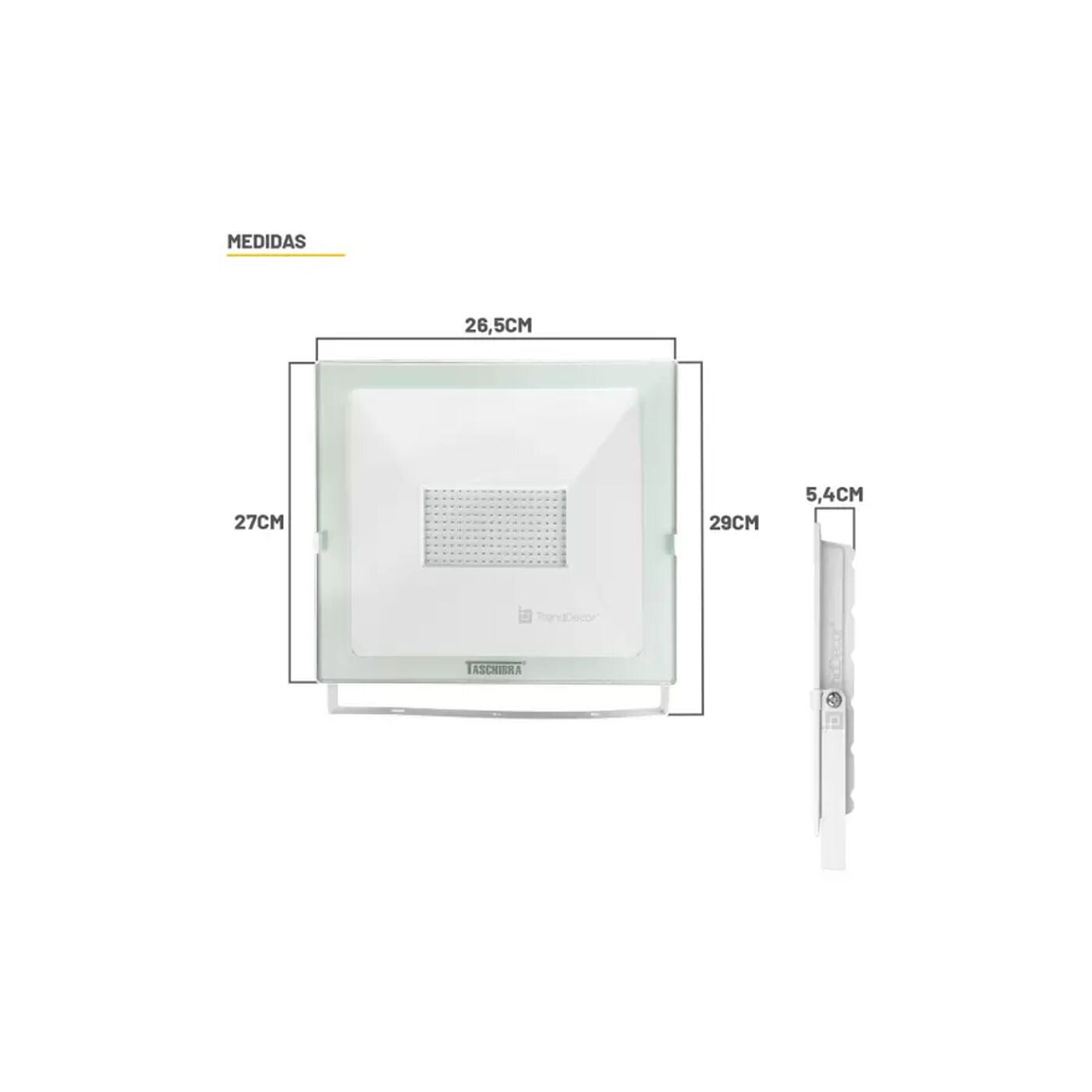 ideal para decorações externas: O Refletor tr LED Slim é um modelo versátil e refinado, possui um diferencial em seu tamanho tornando-o ideal para áreas externas, pontos comerciais, industriais, placas, outdoors e quadras esportivas.