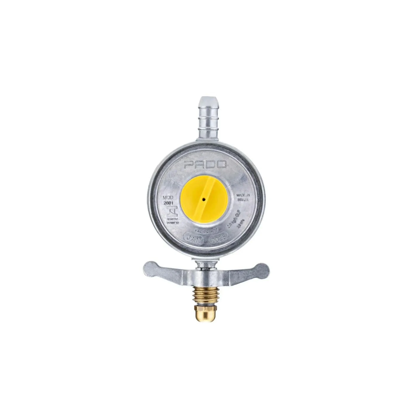 Regulador de gás Pado modelo ZM FP 2001-01, com capacidade de 2 kg/h, indicado para uso residencial, garantindo segurança e eficiência no fornecimento de gás. Produto compacto, leve e durável, compatível com botijões de gás padrão.