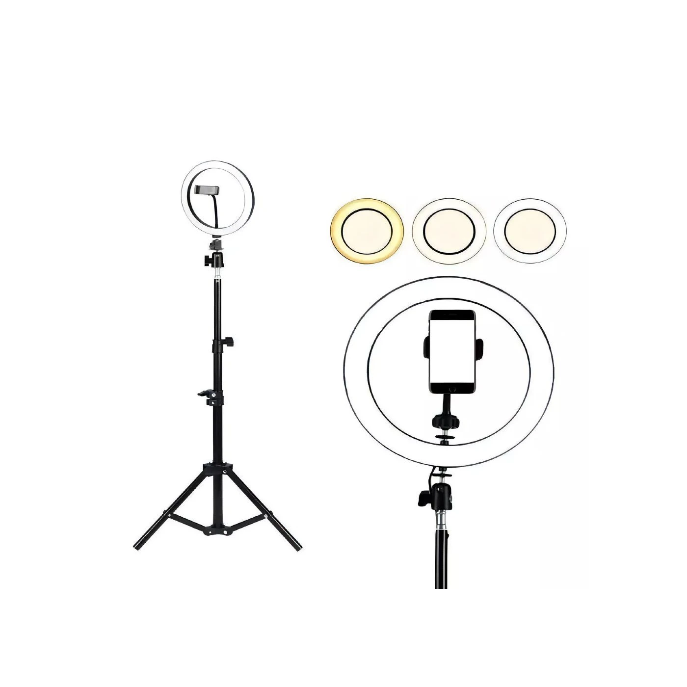 Ilumine suas produções com a Ring Light LED de 14 polegadas, perfeita para criadores de conteúdo, influenciadores e fotógrafos. Com a versatilidade de três temperaturas de cor, você pode ajustar a iluminação para obter o efeito desejado em suas fotos e vídeos.