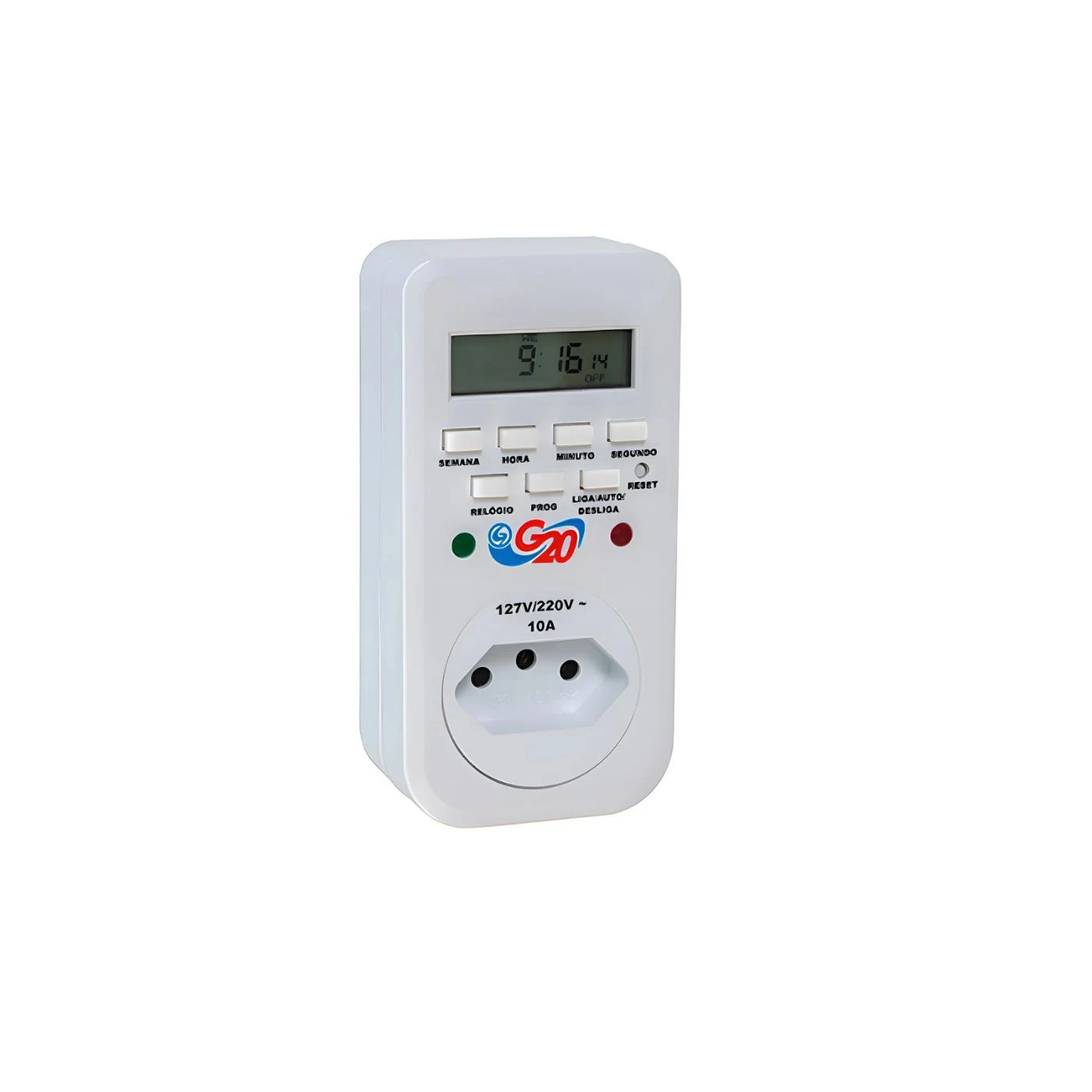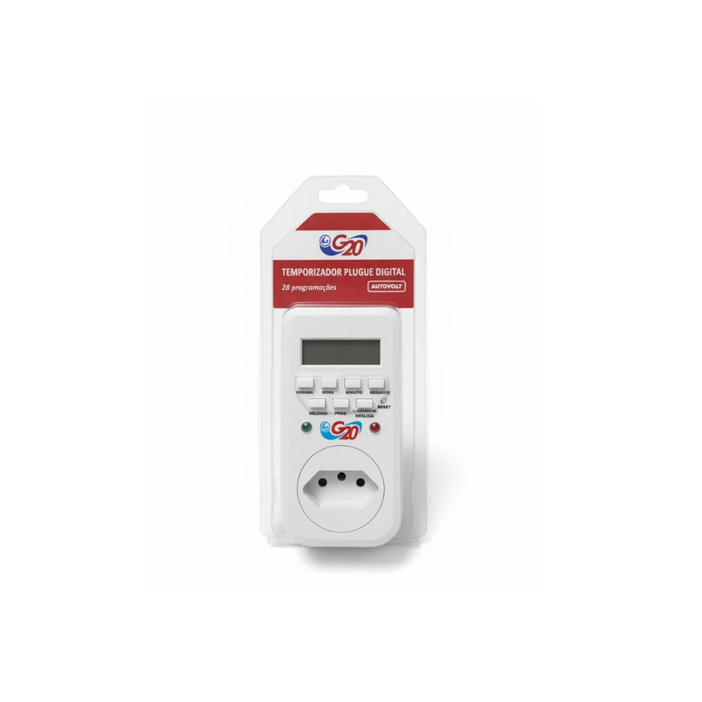 O temporizador digital Autovolt TMP10221 G20 é ideal para automatizar o acionamento de aparelhos elétricos, proporcionando praticidade, economia de energia e controle preciso de tempo. Conta com display digital de fácil leitura e permite até 28 programações diárias e semanais, sendo perfeito para uso residencial e comercial.