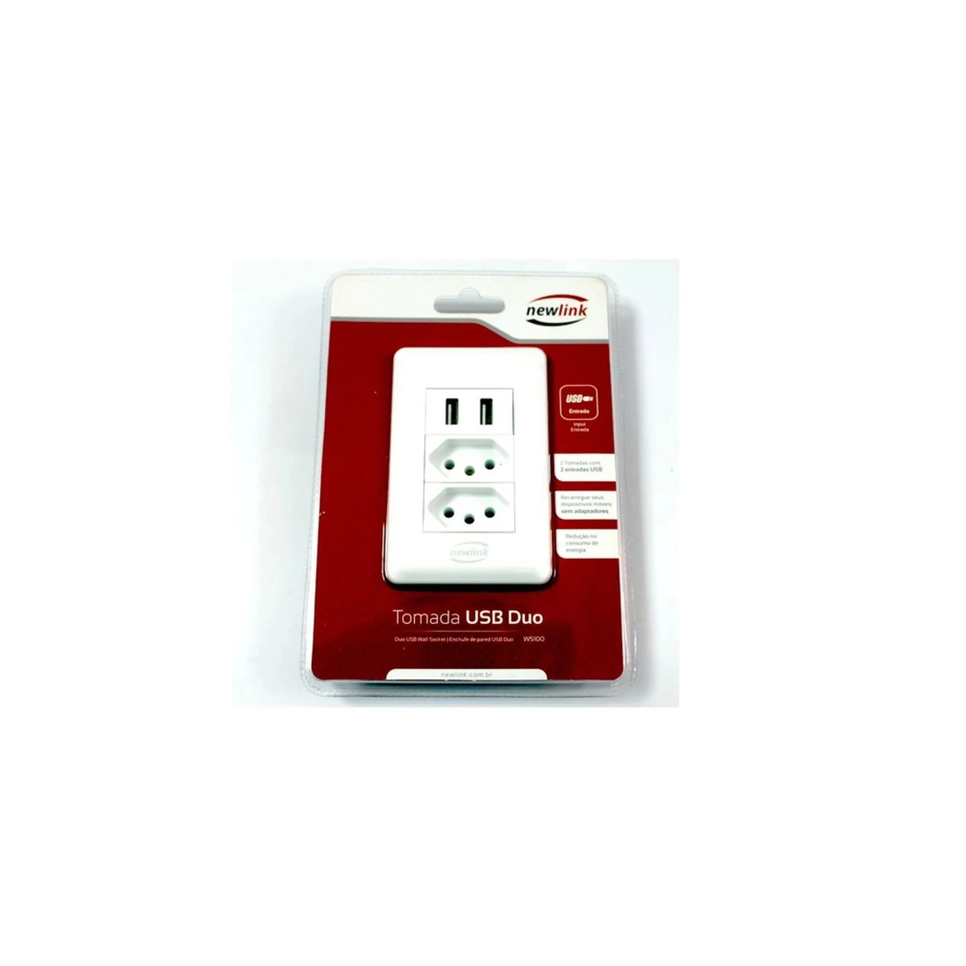 Quanto às portas USB, se estiver utilizando apenas uma, a saída é de 5V 2100mA. Se estiver utilizando as duas portas, a saída é de 5V 1000mA para cada uma. Além disso, a Tomada USB Duo WS100 Newlink é compatível com a versão 2.0 do USB, o que garante uma ampla compatibilidade com diversos dispositivos.