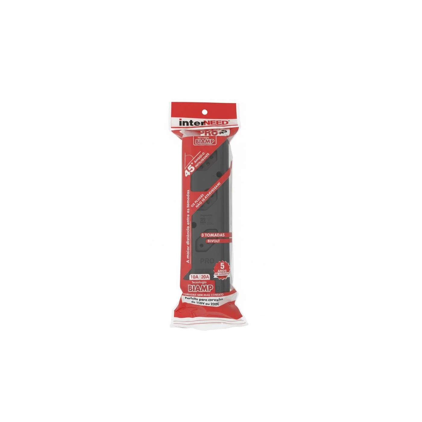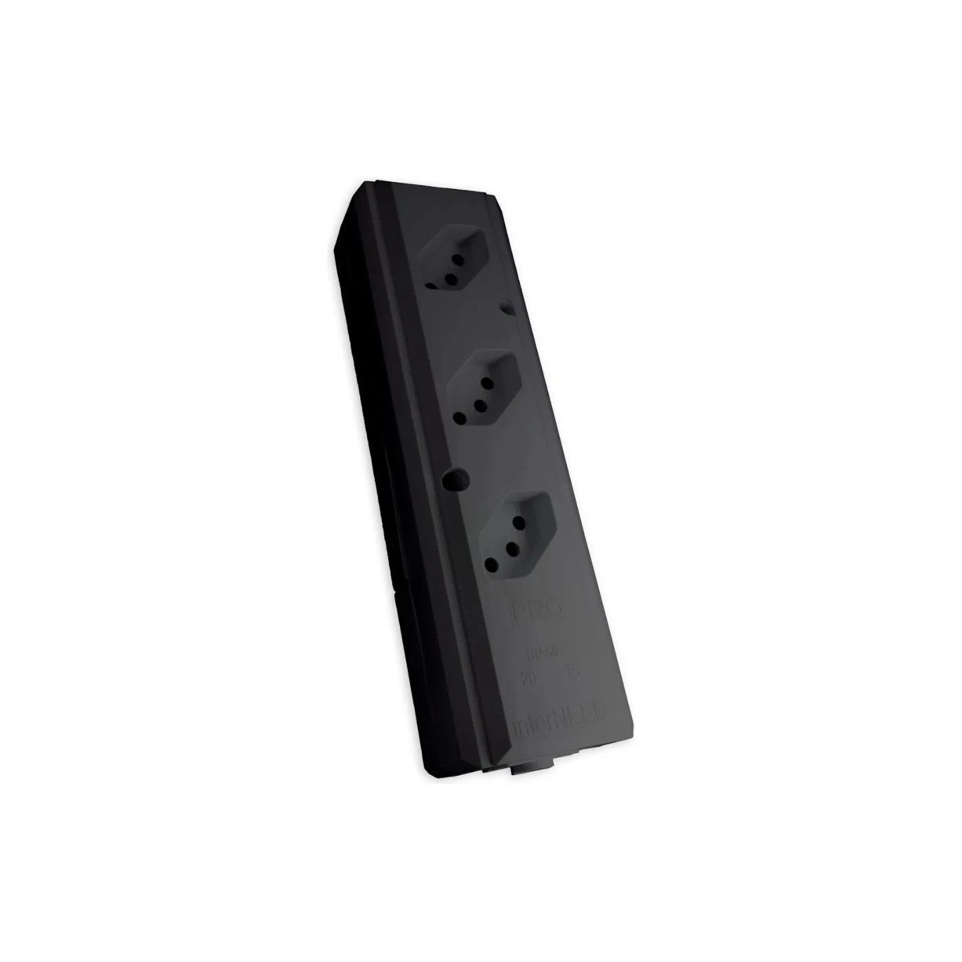 Tomada em barra Pro45 da marca Interned, modelo 2P+T, projetada para oferecer segurança e praticidade em múltiplas conexões elétricas. Ideal para uso residencial e comercial, suporta até 10A e 250V, com acabamento resistente e compartimentos separados para cada plugue. Compacta e eficiente, permite organizar a energia de forma segura e funcional.