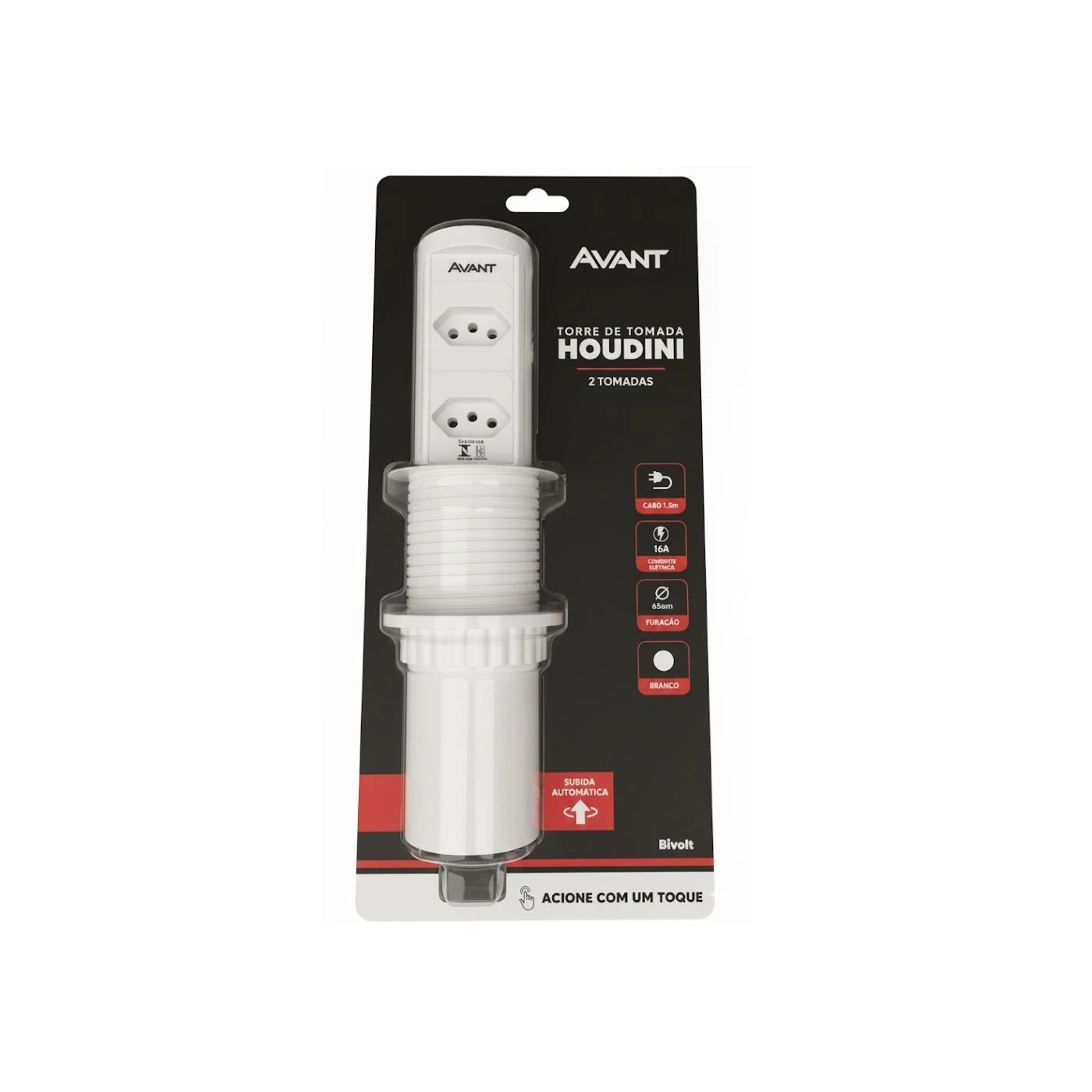 A Torre de Tomadas Avant Houdini 2x16A Automático BF é ideal para instalação em bancadas, escritórios e cozinhas, garantindo praticidade, segurança e um visual moderno. Seu sistema retrátil automático permite ocultar as tomadas quando não estão em uso, mantendo o ambiente organizado e sofisticado.