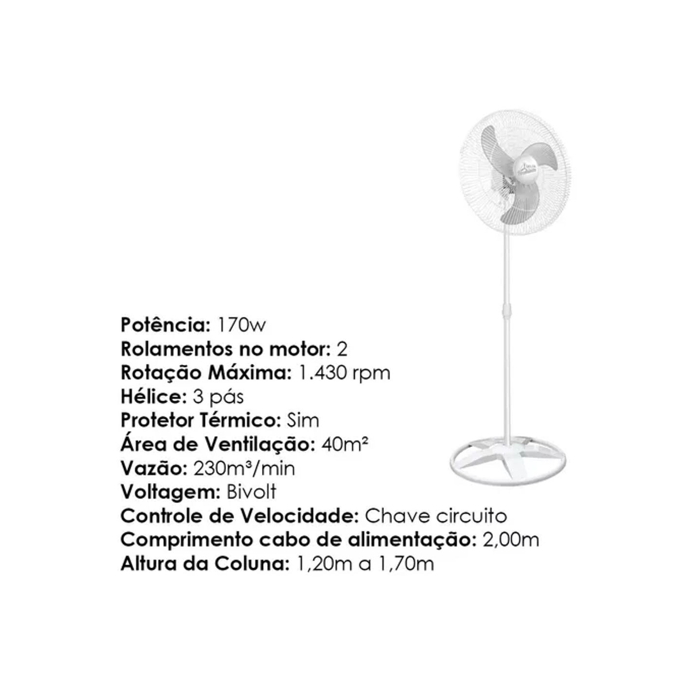 Altura da Coluna: 1,20m a 1,70 m